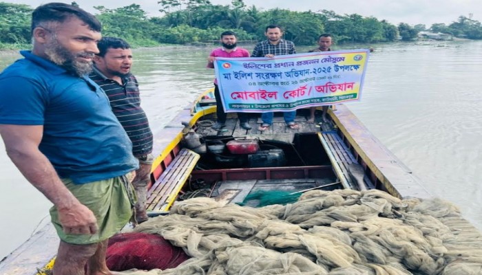 পিরোজপুরের কাউখালীতে ইলিশের প্রধান প্রজনন মৌসুমে মা ইলিশ সংরক্ষণ অভিযানে বুধবার (৮ অক্টোবর) দিনব্যাপী মৎস্য অধিদপ্তর ও নৌ পুলিশ যৌথভাবে উপজেলার বিভিন্ন নদী নালা ও খালে অভিযান পরিচালনা করে চিড়াপাড়া নদী ও খাল থেকে পাঁচটি চায়না দুয়ারী জাল, দশটি চরগরা ও একটি সুতার জাল জব্দ করে, আনুমানিক মূল্য প্রায় দেড় লক্ষাধিক টাকা। অভিযানের নেতৃত্ব দেন কাউখালী উপজেলা মৎস্য কর্মকর্তা হাফিজুর রহমান।