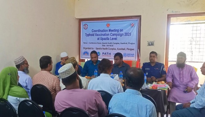 পিরোজপুরের কাউখালী উপজেলা স্বাস্থ্য কমপ্লেক্সের আয়োজনে বুধবার (৮অক্টোবর) সকাল সাড়ে দশটায় উপজেলা স্বাস্থ্য কমপ্লেক্স এর সভাকক্ষে উপজেলা পর্যায়ে টাইফয়েড টিকাদান ক্যাম্পেইন ২০২৫ উপলক্ষে কো অডিনেশন সভা অনুষ্ঠিত হয়। উপজেলা স্বাস্থ্য ও পরিবার পরিকল্পনা কর্মকর্তা ডাঃ ইশতিয়াক আহমেদের সভাপতিত্বে অনুষ্ঠানে প্রধান অতিথি হিসেবে উপস্থিত ছিলেন, কাউখালী উপজেলা নির্বাহী কর্মকর্তা স্বজল মোল্লা।