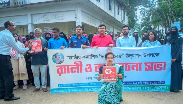 "আমি কন্যাশিশু স্বপ্নগড়ি, সাহসে লড়ি, দেশের কল্যাণে কাজ করি" - এই প্রতিপাদ্যকে সামনে রেখে নেত্রকোনার কেন্দুয়া উপজেলায় জাতীয় কন্যাশিশু দিবস ২০২৫ উদযাপিত হয়েছে।