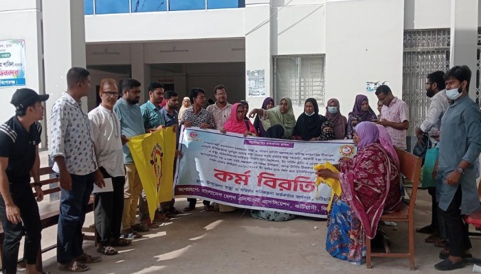 বুধবার (৮ অক্টোবর) দেশব্যাপী ঘোষিত কর্মসূচির অংশ হিসেবে কটিয়াদী উপজেলা স্বাস্থ্য কমপ্লেক্সের সামনে এ কর্মবিরতি পালন করেন বাংলাদেশ হেলথ অ্যাসিস্ট্যান্ট অ্যাসোসিয়েশন কটিয়াদী উপজেলা শাখার সদস্যরা। তাদের দাবির মধ্যে রয়েছে; বেতনবৈষম্য নিরসন, নিয়োগবিধি সংশোধন, শিক্ষাগত যোগ্যতা স্নাতক ও বিজ্ঞান সংযোজন, ইন সার্ভিস ডিপ্লোমার মাধ্যমে ১১তম গ্রেডে প্রতিকরণ, টেকনিক্যাল পদমর্যদা প্রদান, পদোন্নতির ক্ষেত্রে ধারাবাহিকভাবে উচ্চতর গ্রেট প্রদান।